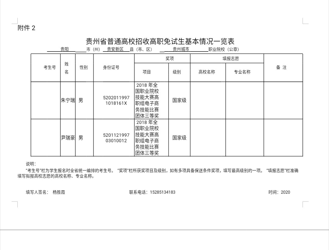 附件: 贵州省普通高校招收高职免试生基本情况一览表(贵州城市职业学院)