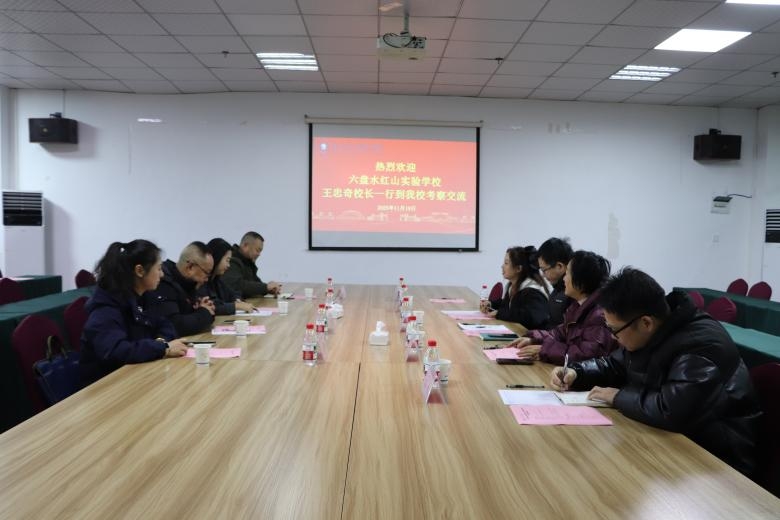 11月19日,六盘水红山实验学校校长王忠奇率校长助理王欢、招生办主任杨丽娜、办公室主任王涛一行四人到访我校考察交流。贵州城市职业学院校长徐高峰,理事会办公室主任、校务委员会主任孙婷,相关职能部门、二级学院负责人接待并陪同考察。
