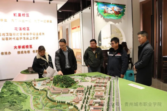 在学校领导陪同下,龚国华校长一行参观了学校智能建造实训中心、智能制造实训中心、汽车科技馆、北斗低空智绘产业学院、贵安新区花溪大学城综合宣传教育基地、校史展览馆、劳动教育智慧实践中心等多个特色教学实训场所。龚国华校长在参观过程中对学校现代化的实训条件和完善的育人环境给予高度评价。他表示,贵州城市职业学院各实训基地建设与产业发展需求紧密结合,教学设施先进完备,特别是在产教融合方面的创新举措值得借鉴。通过实地考察,感受到学校在实践教学方面的显著优势和鲜明特色,这些宝贵的办学经验对推进职业教育改革发展具有重要的参考价值。