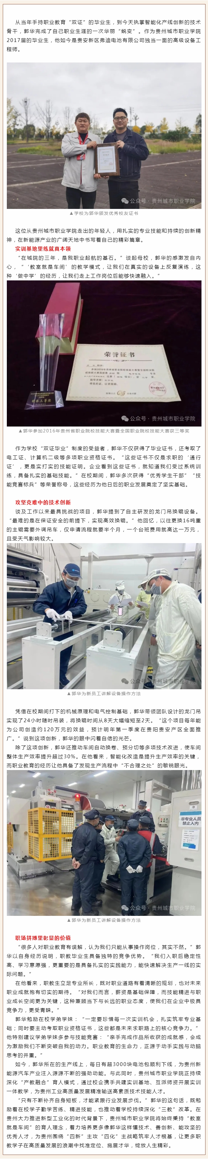 职教出彩·校友风采录|从贵州城市职业学院走出的“能工巧匠”——记机电学院优秀毕业生、高级设备工程师郭华
