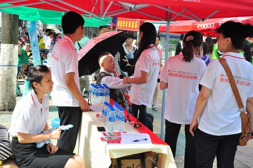 考点外为陪考家长免费发放饮用水的志愿者 |